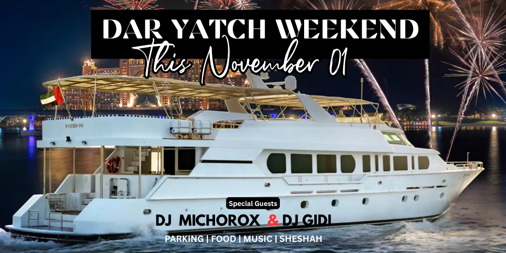 Dar Yatch Weekend – The Ultimate Night on the Waves! Join us for an exclusive yacht party experience and connect with like-minded individuals in a vibrant atmosphere under the stars. 1. Strictly 21+ only – an exclusive adult experience.2. Departs daily at 9:00 PM – set sail for an unforgettable night of music, energy, and ocean vibes.3. Live DJ on deck – feel the rhythm as top beats fill the night.4. Live BBQ on board – enjoy freshly grilled delights as you mingle and dance.5. Refreshing beverages – sip, relax, and toast to good times with amazing people. Come aboard and make memories that last long after the night ends.